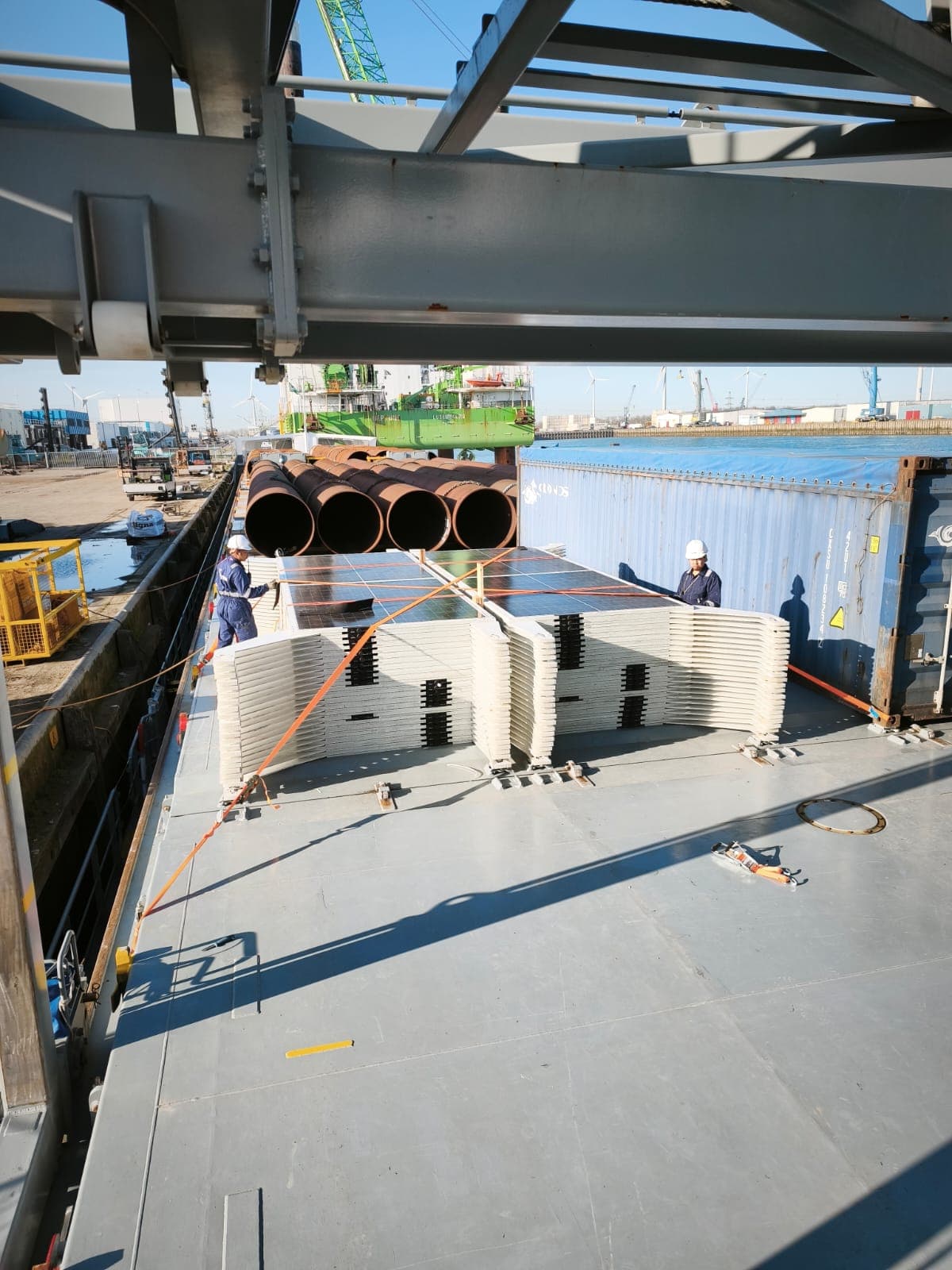 In collaboration with TNO and shipping company Vertom, the system was tested on the Vertom Anette. The insights gained were subsequently applied to the Vertom Tula, where 44 Solar Flatracks reduce approximately 20% of the onboard hotel load. The project was co-financed by the European Union’s Just Transition Fund (JTF), part of the European Green Deal towards climate neutrality by 2050.
